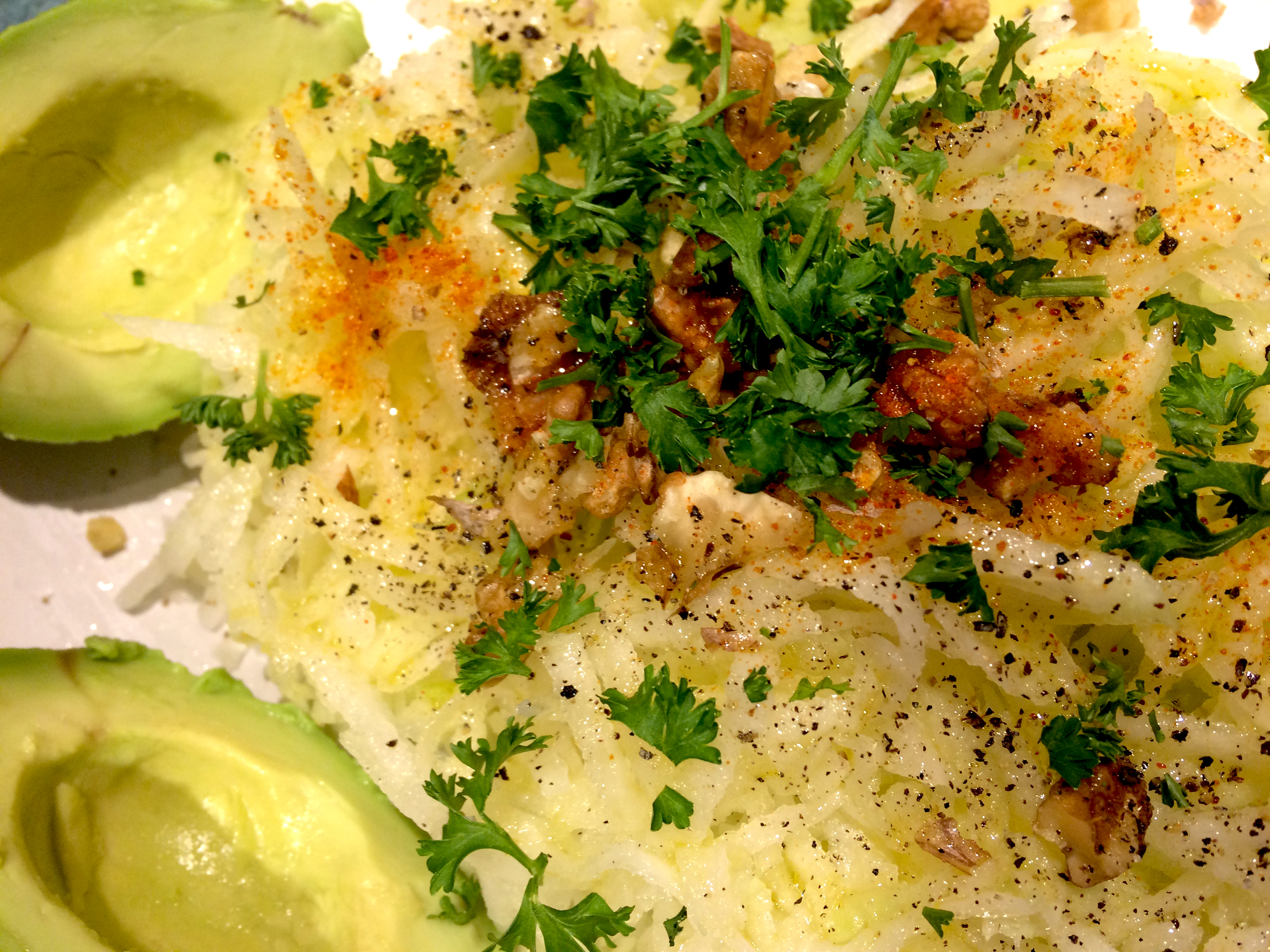 J’y rajoute des morceaux de noix, des morceaux d’avocats, du persil frais…. des super aliments!